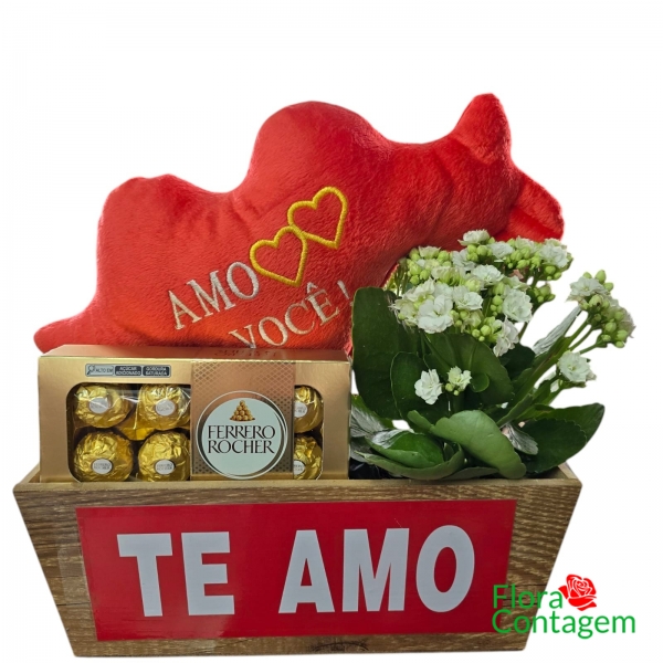 Vaso de flores médio (Kalanchoes ou Violetas), em um caxepot retangular, Personalizado TE AMO;